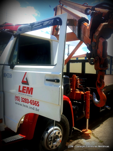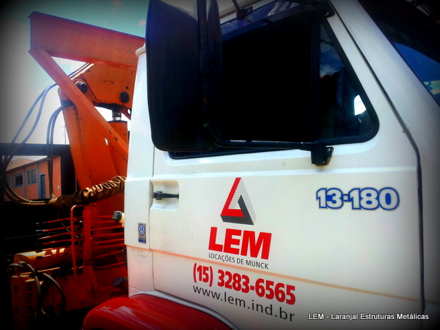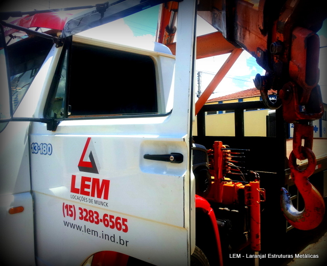 O caminhão munck da LEM – Laranjal Estruturas Metálicas é um equipamento empregado em soluções técnicas de movimentação, içamento, remoção de equipamentos, manejo de máquinas industriais, comerciais, caldeiras, reservatórios de água e utilizado também na construção civil.